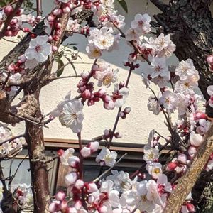杏の花が咲き始めました。 近頃は、近くの教会⛪️で蜜蜂を🐝飼われなくなったからか実が少ししかならなくなりました。