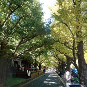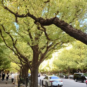 外苑前イチョウ並木 黄葉はこれから… 良い頃に来れたらなぁ この道も散ったイチョウで真っ黄色になるのだわ😍