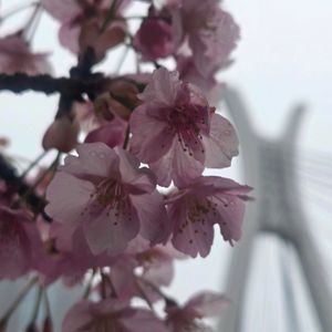 今朝の中央大橋 河津桜ちゃん 雨あがり ちと暗いけど 今日も元気貰います
