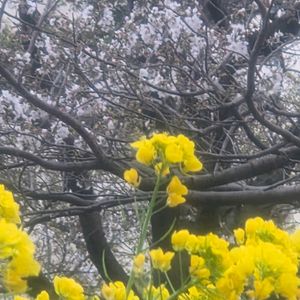 分かるかな〜 菜の花とソメイヨシノちゃん かなり咲いて来ました でも明日は雨です 寒いみたいです