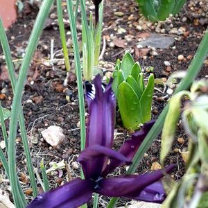 おはようございます😊 寄植えから、ヒョコッと顔を出した紫の花💜💙 目も覚めるような 美しい紫の君は??🤔 昨年、シクラメン、ナデシコを寄植えした際に球根を色々と忍ばせたんだけど何を植えたんだっけ‥忘れちゃった😅💦 アイリスレティキュラータと 教えて頂きました♪ しんのすけさん、トリトンさん ありがとうございました🤗💓