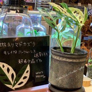 マドカズラ斑入り🪴 🌤 33℃/25℃ 昨日と比べて日差しが少し少なめなせいで少し暑さが和らいでる感じです。 TVで浅草の気温38.4℃って…..💦 先日お邪魔したガーデニングショップで見つけたモンステラ属 マドカズラ 斑入り 斑入りのモンステラ探してるんです。 なかなか見つからずです。 て、お値段がとんでもない事になっているので、手を出せません( ்▿்) これもとても素晴らしいお値段です👏👏