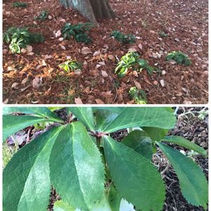 公園のクリスマスローズ 毎年可愛いお花をつけて楽しみでした。 が😭 秋の草刈りでおじさん達に機械でガーっと刈られてしまってました。😱 しばらくして枯葉の合間から、株が顔をだしていて、少しホッとしました。 でも、しばらくはお花は、無理かもと思っていたら、一株だけ開花している子をみつけました。😊💗💗💗 が😭 柵の向こうなので、地面に寝転ばないとお顔は撮れない💦 さすがにそれは無理なのでうつむいた感じをご覧ください。
