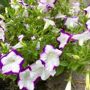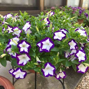 おはようございます☀ サフィニアアート 江戸しぼり🌸 昨年、葉先が黄色くなるのが気になりつつも、元気でたくさん咲く花がかわいかったので、今年もお迎えしました。 すでに一株で50センチ以上?あります。 今年も元気に咲いてね❣️ 今日も良い一日になりますように✨