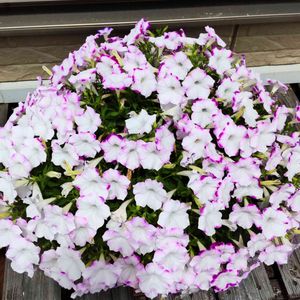 サフィニアアート・江戸しぼりの挿し芽の子、2度目の満開を迎えています。34cm植木鉢からあふれ出ています。🔶🔷🔶 元気な2代目さんです。😊😊😊