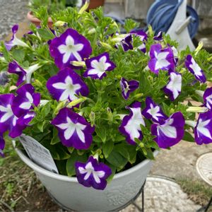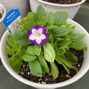 🌼サフィニア・アート🌼 〜江戸しぼり〜 植え付けました。 サフィニアとは サントリーさんと京成バラ園さんとの共同開発のペチュニア、 忘れないように書き留めておきます😊 かわいい縁取りの江戸しぼり💜 もりもり咲きますように✨