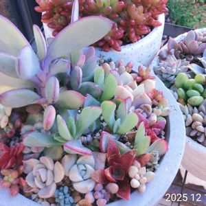 こんにちは(*´ω`*)ノ))☀ 今日は快晴💙✨ 今朝の多肉ちゃん•*¨*•.¸¸♬︎ 1枚目はカラフルになってきた寄せ植え(*´꒳`*)🩷🧡💚❤️ 2枚目はミニ葉牡丹とアリッサムの寄せ植え💐𓂃𓂂ꕤ*.゚ 最近のミニ葉牡丹✨可愛いよね〜😍