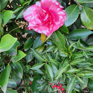 おはようございます(❁´ω`❁) ①②八重のクリスマスローズさん🌸たくさん咲いてきました⸜(*ˊᗜˋ*)⸝ ③3年前にお迎えした苔玉のヤブコウジさん赤い実が可愛い♥️ ④ポリゴナムさん元気です🌸 ⑤日高ミセバヤさんの紅葉も素敵です🍁 今日も一日頑張りましょう(*´˘`*)♡