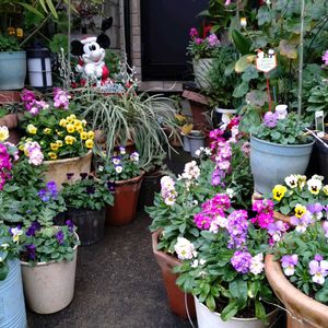 今年のときめきビオラ💖 ビリビリ ひらひら蝶々 バタースコッチ ディアミッキー なんだかみんなビリビリしてる のは気のせいかなぁ🤣 寄せ植えは11月の植え付け時pic ときめきはカゴが良く似合います🧺