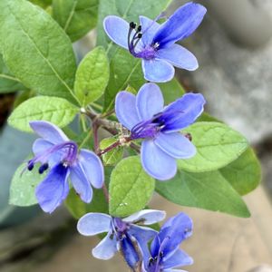 まだ咲いてます💙 🔹クレロデンドルムブルーウィング 10月に剪定をしたら、また開花 🔹四季咲き紫陽花 霧島の恵 紅葉した葉っぱとのコントラスト が不思議です 🏷美しく青きドヨウ