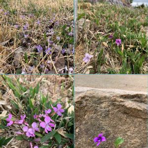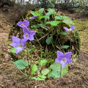 こ〜んな、土手ではなく崖💦の途中に咲く。 近くで見たいが…のぼれない❗️ 精いっぱい手を伸ばして撮る。 花弁がとがっている👀 何すみれ? 4月3日 🤳