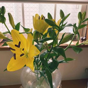 今週の切り花 黄色い百合 香りが少なく上品な存在感