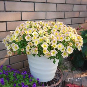 おはようございます〜😆 今月も、よろしくお願い致します〜💠💞 あつい暑い〜😅 今日は、お隣さん同士のお花をコラボさせてみました〜😍 ①レウカンセマム ミルキーウェイバナナクリーム🤍💛 サンパチェンス プリティピンク🤍🩷 ②ビューティカル🤍🩵 とらネコ💛🤎 ③スーパーチュニア ビスタミニバイオレット💙💜 とらネコ💛🤎 ④アマゾナス💚💜 ラブリースカイ🤍💙 ⑤ジュリエット モダンホワイト🤍🤎 桜モダン🤍🩷 ペチュニア系の名前を書いていたら、今年も沢山育てているんだと〜・・・他人事のように言っていますが、昨年より減らしたと確信していたんですよ~😅⤵️ でもね、みんな綺麗に咲いてくれてるの〜😆🤭🎉 嬉しいわぁ〜〜🤣⤴️ この暑さと蒸れが大敵で、どこまで私とお花さんが耐えられるか~😭 大好きなお花を、捨ててしまいたいと思わせる夏〜(笑) でも、暑さの中頑張る、お花に負けていられないので、朝夕の水やりと花柄摘み、頑張りますよ〜お花さん達〜💠💞💮 〈🩵💙早く10月にな〜れ💙🩵〉