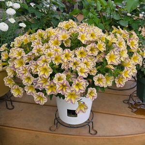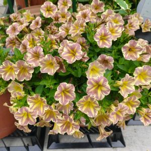 初トラねこ🐈 5/8に7号バスケットに植えて咲き始めました😊 この子は育てやすくてかわいい〜と皆さんのオススメで🔰 ラスト昨日の様子…1日で花数も増えてます 鉢いっぱいに広がってきてる😆