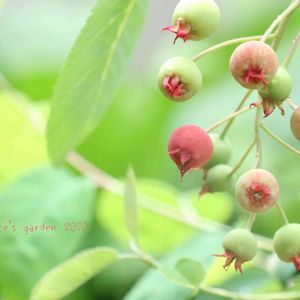 今年お迎えしたジューンベリー♥️ 収穫は約20粒〜〜😆 少な〜 笑 まかろんちゃんのN-ABE鉢と一緒に🥰 来年はもっといっぱいなりますように〜(*´艸`*)