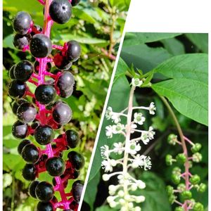 ヨウシュヤマゴボウ 可愛い花がまだ残っていました。 一つの株で花から実への変化、軸の色の変化も三段階と楽しめます。