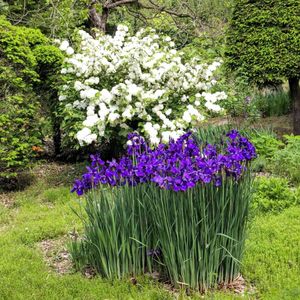 広い畑の続く道、 畑の横に素敵なスペース。 オオデマリの前は、 カキツバタでしょうか?