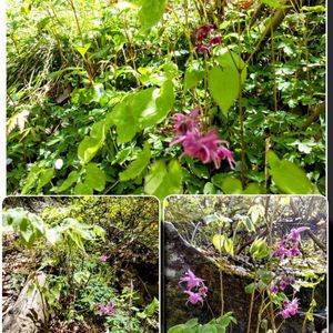 イカリソウの自生地へ 未だ咲き始めのようです。 道路の上、横、足元に沢山の花芽が待機している。