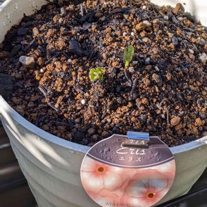 エリスさん🌼🌿🎶 丸一日、雨に打たれて 心配していたら 芽がでました🌱✨ おかえりなさい☺️🧡