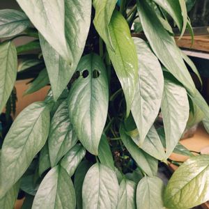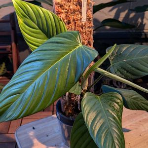 フィロデンドロン・ジェネヴィビアナムが恐らくモスポールないと暴れるタイプだと思ったので、モスポールを付けて見ました😁 エスメラルデンセと葉波変わらないかと思ったけど、光に当てると綺麗な事にきずいた😳