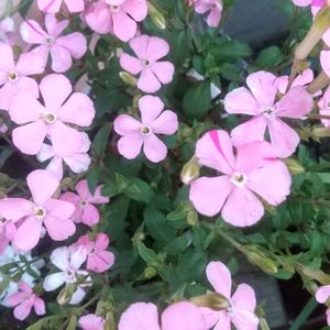 シレネライトピンクパンサー、こぼれ種のお花、前のと違う株、咲いて来ました。💠💗 これは、こんな感じに、ピンクパンサーの色が、混ざっています。 3/4のは、斑入りでしたが、 こぼれ種は、色々咲きますね。 ②2株の先を切ってきて、花瓶に挿して見ました。 枝葉が伸びているので、先を切って来ました。 脇芽を伸ばして、枝葉増やそうと思います。 そして、沢山咲いてくれたら、嬉しいです。💠