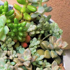 酷暑で大丈夫かと 心配していた姫秀麗メインの多肉寄せ 持ち直ししてきた🌱 この子達、紅葉すると意外にも カワイイ💠 (🏷kベランダ葉挿しっ子のタグを みると前のが分かります) あと少ししたら可愛くなるかな(*´˘`*)♡