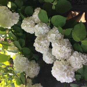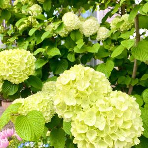 おはようございます☀ 御本家の白い「アイスバーグ」が 咲き始めました。 純白、やはり美しいです😍 一緒に写ってるのは「ピンクオオデマリ」。咲き進んで?先祖返り? 気づいたら、白ばっかり😅
