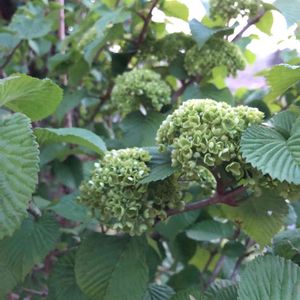 昨日のウォーキングコースで 咲きはじめのオオデマリ 白に変わる前の 淡いグリーンも ステキです🌿