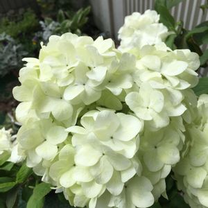 こんにちわ🌿✨ 我が家、オオデマリ💚🤍✨ 1週間ですっかり白くなりました✨ 朝から、ものすごい勢い強風です🌬 春の嵐、近づいてる感じです。 オオデマリ、強風でポキッと行かないか心配です。 先ほど、頭をボーボーにしながら、 外の植物移動🪴致しました💦