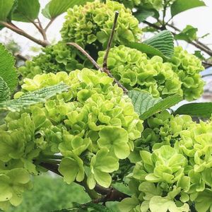 おはようございます🌥️ いつもの散歩道、ご近所さんの畑の端っこのオオデマリ。 薄いグリーンのお花が可愛いです🤗