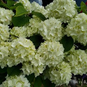 とあるお庭 2/4 少し時間が経つと、真っ白なオオデマリの花が、ほんの少し黄緑色に♡♡♡💚