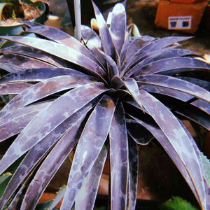 植物名:アガペマンガベ 科名:アガペ科 属名:アガペ属 原産地:メキシコ~アメリカ南部 [サイズ] 全体の高さ:46.0cm 全体の幅 :45.0cm 鉢の高さ :21.5cm 鉢の横幅 :21.0cm 皿の直径 :20.0cm 皿の素材 :アイアン(防サビ加工) [育て方] 日当たり:日向 水やり :土が乾いた頃に、底穴から水が抜けるくらいたっぷりと。 置き場所:風通しの良い明るい屋外 耐寒温度:0℃ アガベの仲間、マンガベ。新ジャンルのハイブリッド植物で、 他の多肉植物のように乾かし気味に管理しても、草花のように水を与えても大丈夫な為、 とても管理しやすく初心者におすすめです。 ムーングロウはシルバーがかった青緑色の葉と、 濃い紫色の斑点模様のコントラストが美しい品種。 長くてフラットな葉はかっちりとまっすぐな形に生育します。 緑いろのトゲは柔らかくてとても扱いやすいです。 自然な風合いのPOTにコーディネート。 ベランダなどでも存在感のあるひと鉢です。