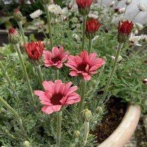 ローダンセマム、マーズお迎えしました💕 隣にいる冬越しローダンセマムはまだ葉っぱだけ🌿 仲よく咲いてくれるのはいつかなぁ(ღ*ˇ ˇ*)。o♡ 🏷️真っ赤な火曜日 🏷️マムダチ 参加します
