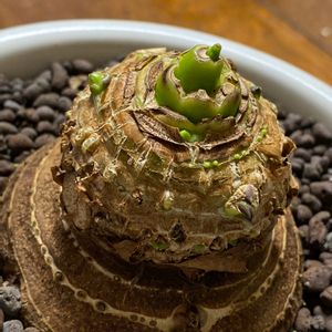 深夜の海老芋。 なんか、茎に虫らしき点々があってので拭き取ってやったのよ。 ふっと横見たら第三のなんかが出てた。