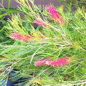 あまりにもの赤さに🥹💖に連れて帰って来ちゃいました😂😂😂😂 コウヨウ🍁らしいですね☺️ 4.5号ポッド 1,100円😳‼️ ベキアorベッキアorバーケア🤣 リニフォリアしか流通していないみたい 2014年7月に豪花舎アネックスさんの ブログが載っていました☺️ さすがです🥹💖 クィーンズランド州~ヴィクトリア州のかけて、オーストラリア大陸の東部沿岸地域に自生します。 高さは1~2mほどで、それほど高くなりません。 葉は線状で細く、花は白い小花で、枝を覆うようにたくさん咲き、開花時期は主に夏です 1⃣花芽🔍⸒⸒なのかな🤔❓ 下枝にしか無かった(´・ω・`) 📸撮影後に支柱をしたけどトップは柔らかいので🙄💭ヤッパ垂れらしときました(♡ᴗ͈ˬᴗ͈) 英名にはウィーピングと付くらしく 「枝垂れた」と言う意味だそうです。 4️⃣5️⃣グレビレア ブロンズランバー🥹💖 こちらもしだれ😂😂😂😂 4号ロングポッド 1,380円😳‼️ お迎え🚗💨しました(♡ᴗ͈ˬᴗ͈)