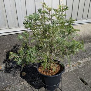 グレビレア ジョンエバンス(ㅎㅅㅎ) 1️⃣2️⃣ 2025年9/25 久しぶりの単pic📸アカシア ゴールドチップの前に置いているので全体📸では写って(o・・o)/いるものの同化している子🤣 剪定✂️した枝から4~5本萌芽し 自然分枝をし始めているがチラホラ😊 昨年は11月に最初の花🌸が咲いたが… 来シーズンの花は🤔❓ 咲かなくても樹姿を造る意味では 今年の強剪定✂️は必要だったと思います(⋆ᴗ͈ˬᴗ͈)” 下枝は葉🍀を落として枯れると思っていましたが残っていますね… 成長と伴に下枝は枯れる時が来る🤨❓ と思っているので今は生やしています(⋆ᴗ͈ˬᴗ͈)” 3️⃣6月に鉢🪴の乾きが気になり🙄💭 8号ロングスリット鉢に予定外の植え替え(‘-’*ゞキレイな根鉢でした😊 強剪定✂️1ヶ月後には芽吹きε-(´ω`;)ホッ 1ヶ月後ぐらいの樹姿🌳 4️⃣昨年の花後に剪定✂️出来なかったので🤔❓今年の花🌸は枝が垂れてしまっていたので…(*'ω'*)......ん? (。 ー`ωー´) キラン☆4月下旬に強剪定✂️ 5️⃣2024年4月上旬にお迎え🚗💨 花🌸後に7号テラコッタ鉢🪴に植え替え 怖くて😱ハサミ✂️を入れれなかった😭😭