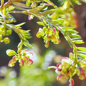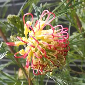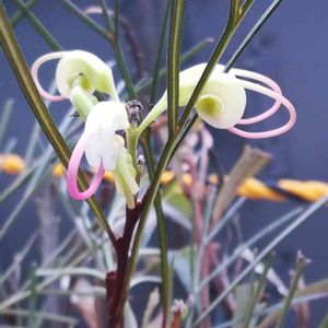 建物🏙️のエントランスに植わってました。 繊細で変わった花🌼❕ グレヴィレア・エレガンスかな。 オージープランツとか