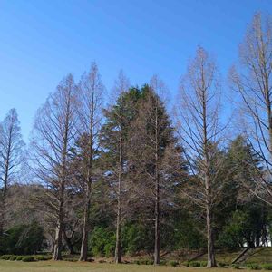 【仙台・散歩】 ~ヒマラヤスギとメタセコイア~ こちらのメタセコイアも、まだまだ裸ん坊! 後ろに、クリスマスツリーのようなヒマラヤスギ🌲が見えています。 この冬は、たくさん雪が降り、寒かったです。 それを乗り越えてきたメタセコイアが、再び、青々とした美しい姿を見せてくれるのがとても楽しみですヘ(^o^)/