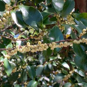裏山の入口付近に植わってるヒサカキに、花が咲いたよ〜🤗