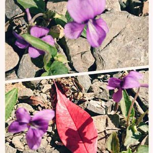 砂利をかき分けたようにして咲いているスミレ(^.^) なんとも健気でかわいいです❗