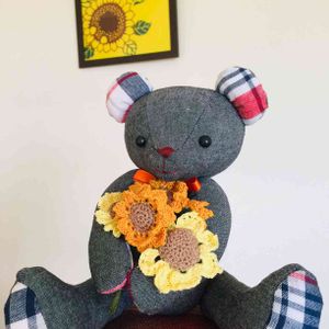 すみません💦 生花じゃないですが、、 義母の誕生日に テディベアを作ってみました。 ひまわり🌻を 持たせて。 服を処分する前に ん!これで何か作れないか?と検索。思い出のある服が別の形になりました。 夫の服だから、義母も喜んでくれるかな?笑