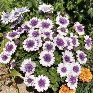ダブルオステオスペルマム ブルーベリーシェイク💟 小菊の名前は不明…ナントカマム🤣 キレイに咲いています.*♡*♡.*♡.*