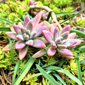 可愛いお花が咲いたと思ったら多肉さんでしたセダムとハナニラの葉っぱの上にちょこんとのって良いお色🩷 寒くてもお日様が出ているので気持ち良さそうです 1月も残り少しになりましたね体調崩さず過ごしましょう😊