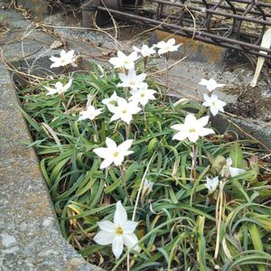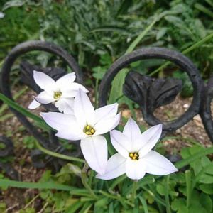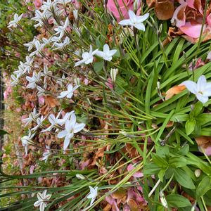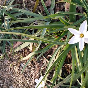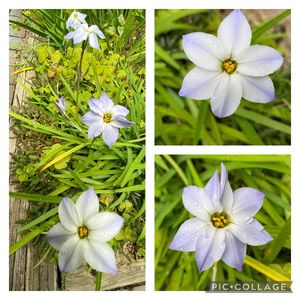 花韮の花が咲いてきました‼️ 朝、水をくれていたら、白い小さなハナニラを発見❣️ 春一番の花です🤍 庭のあちこち植えてありますが、この1番花は 寄せ植えの鉢の中でした‼️