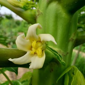 パパイアの花が咲いてきました。 ちょっと甘い香りが、 します。