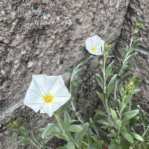 名前は分からないけど咲きました😅 なんだか白い花が咲くと書いてあったけれど、ちょっと予想外のお花でした。シルバーリーフがステキです。