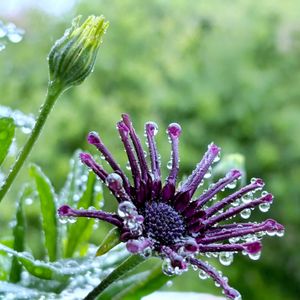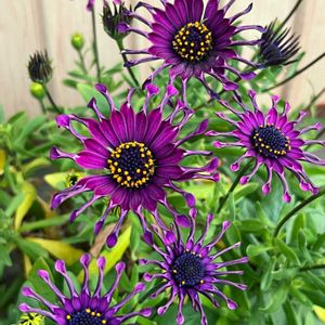 オステオスペルマム 💜 スパイダー🖤 今朝は雨でした☔ スパイダーも咲き始めてきたわよ🐾 (๑◔︎‿◔︎๑)•*¨*•.¸¸✨