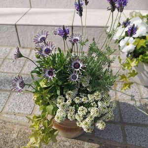 オステオスペルマム スパイダー 春一番の暴風の中、寄せ植え作りました😅