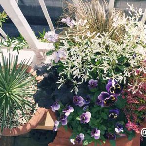 GS で皆さんの寄せ植えに 触発され~の、植え~の、 投稿し~の!(* ̄∇ ̄*) パンジー、ビオラはサル顔が好きでやんす♥ 毎年植えるけど、こんなにでっかい鉢で寄せるのは初めて🔰! 面白い!\("⌒∇⌒")/