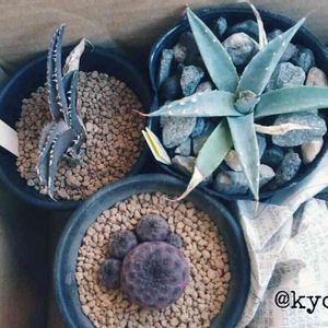 上 ニータ! 本葉2枚目のちっこい棘が見えてきました! 紅葉して、小豆色に♥ 右下 かんのさーん、新芽動いたよ!元気でーす!(*^-^*) 左下 アロエ フローレンシア 花が可愛いの💕一目惚れ!